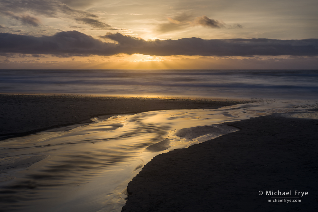 Ocean and creek at sunset, Monterey Peninsula, California