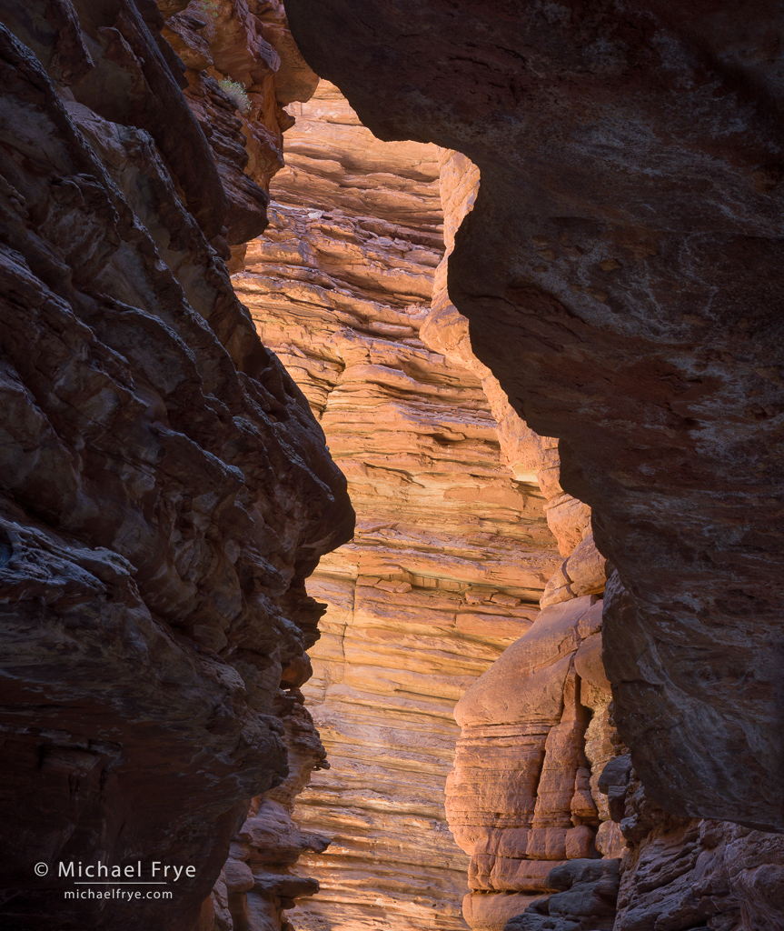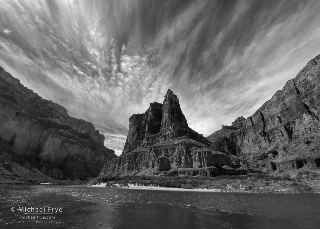 This photograph shows only a tiny slice of the canyon’s immensity, but I hope it’s a representative slice, one that conveys a little bit of what it feels like to journey down the river, where each bend brings new vistas of tiered cliffs soaring upward toward the canyon rim.