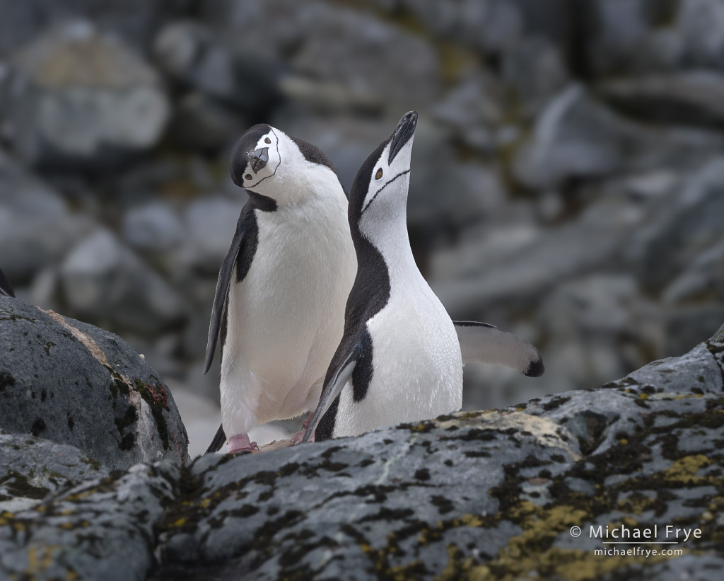 And of course we’ve seen lots of penguins. Here are a couple of photographs of chinstrap penguins from our second day.