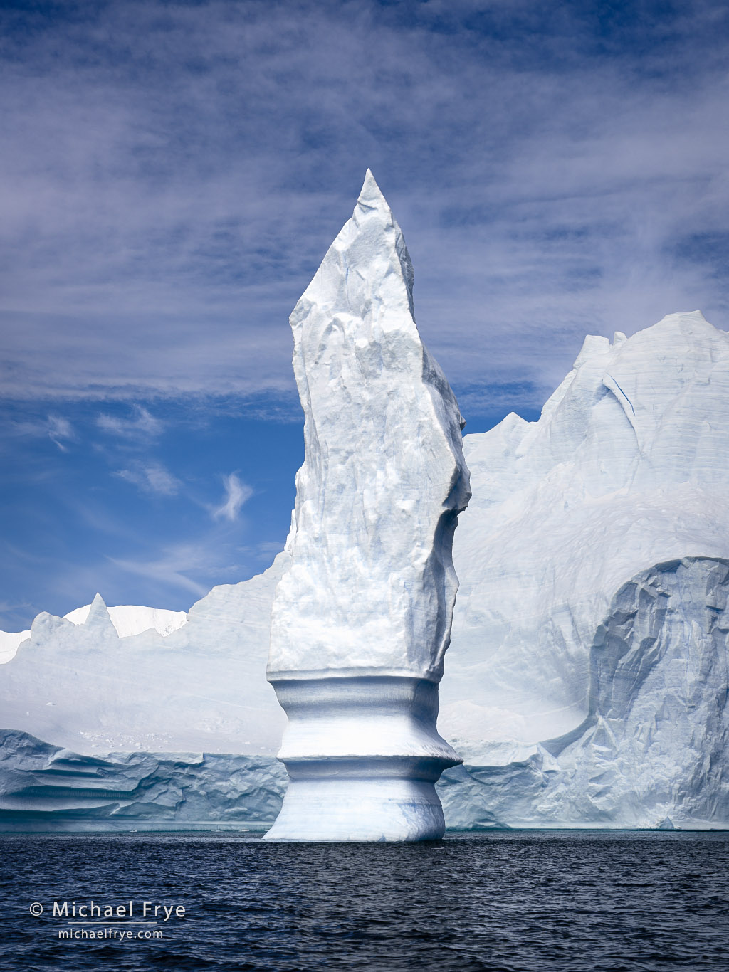 Ice spire, Antarctica. This is the same tower shown in the previous photo, from a different angle. It’s actually an exposed finger of ice connected underwater to the larger berg behind it.