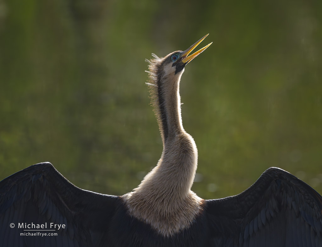 Anhinga, Florida. I liked how the backlight glowed through the anhinga’s feathers and beak, and was able to get close enough to emphasize those elements in the composition. 433mm, 1/1500 sec. at f/8, ISO 500.