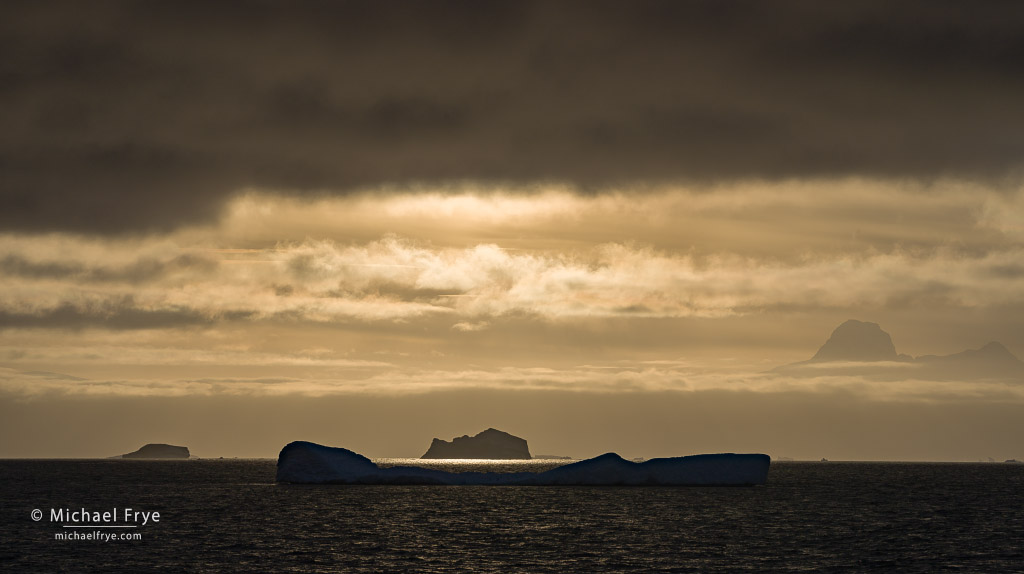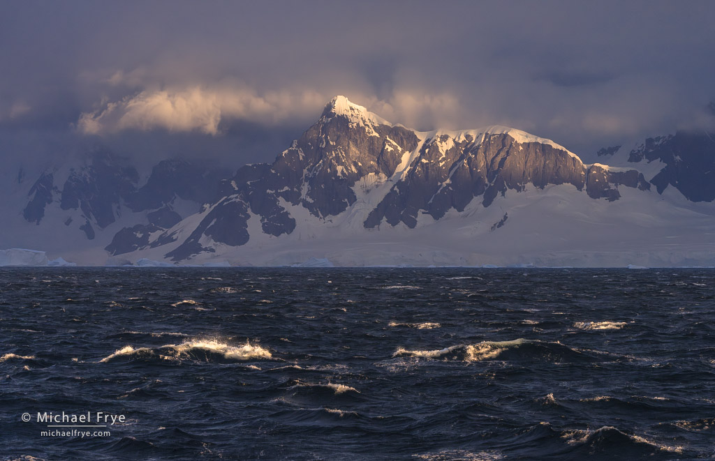 I used all those varied skills in Antarctica while photographing the abundant wildlife, or composing landscape images from a moving platform. But it was all a lot of fun, as there were photographs everywhere, with an endless array of spectacular landscapes to go along with that Antarctic light. Sometimes during a long, lingering sunset I stayed on deck for hours, unable to tear myself away for fear of missing something. Except that occasionally, when things got really good, I’d go below and encourage people who weren’t already on deck to get out and photograph the magic light!