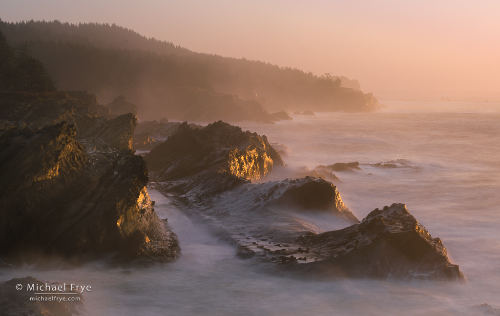 Misty sunset on the Oregon Coast. 73mm, 8 seconds at f/16, ISO 100, ND filter.
