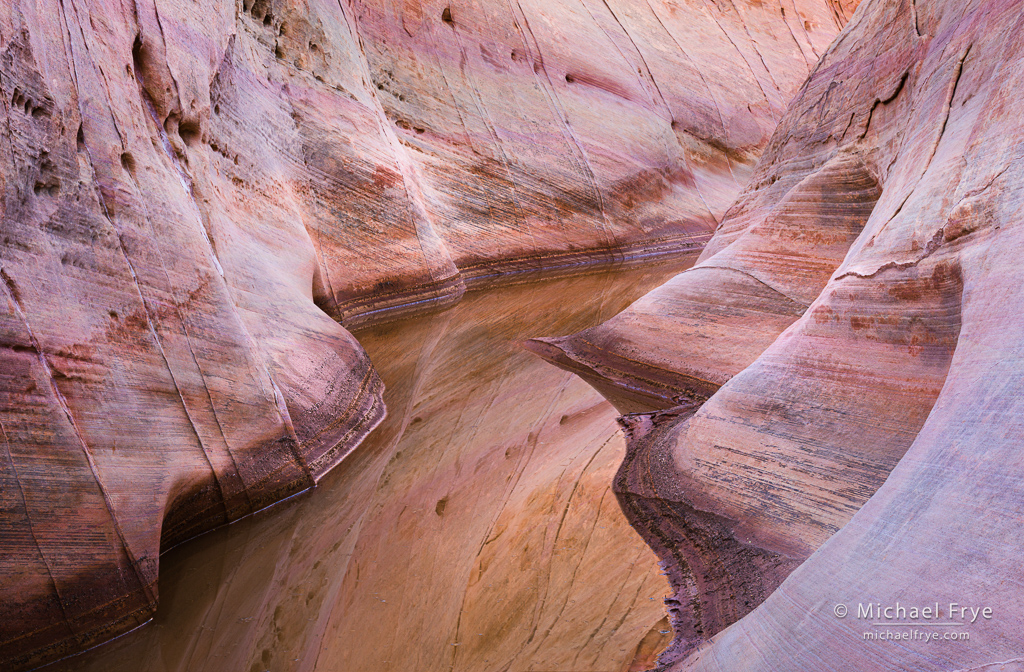 Pool in a slot canyon, Valley of Fire SP, Nevada. Recent rains had filled this colorful little slot canyon with water.