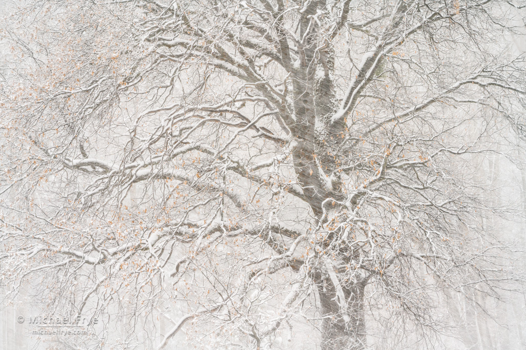 Oak in a snowstorm, Yosemite. 253mm, 1/15 sec. at f/11, ISO 400.