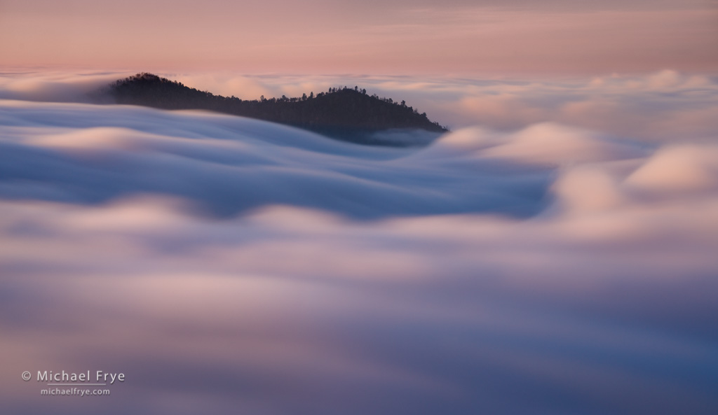 Cascading fog, Sierra Nevada foothills, California. 111mm, 15 seconds at f/11, ISO 200, 4-stop ND filter.