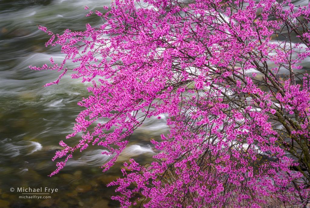 Redbud above a rapid in the Merced River, California