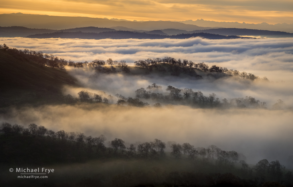 Ridges and peaks above the fog in the Sierra Nevada foothills, California (170mm)