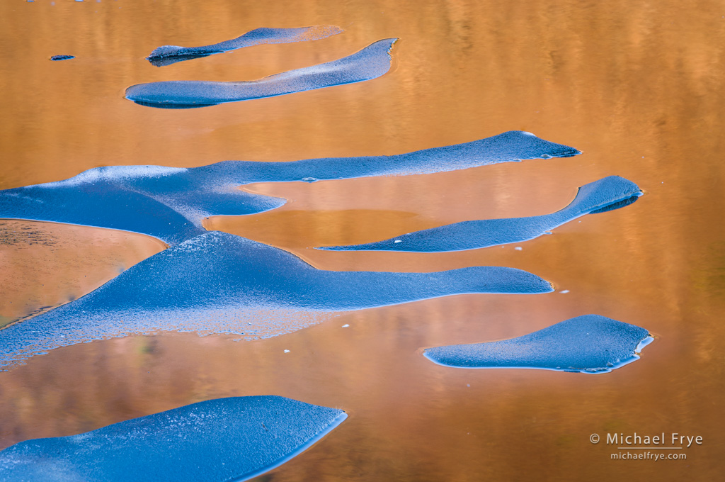 Later, while scouting for our high-country workshop, I did find some ice on higher lakes, away from the road. And our workshop group got to photograph a small patch of ice on one lake before it all melted. I think if we had arrived at that lake one day later the ice would have been gone.