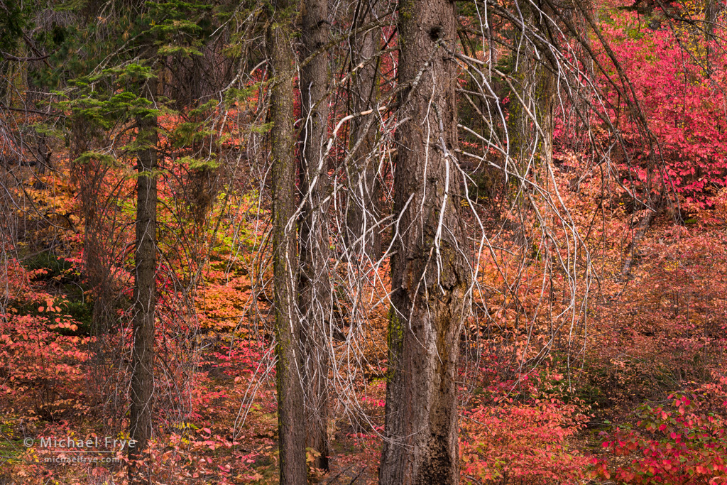 Firs and dogwoods, autumn, Yosemite. Dogwoods have proliferated in this area burned by the Rim Fire in 2013. 116mm, 15 seconds at f/16, ISO 100.