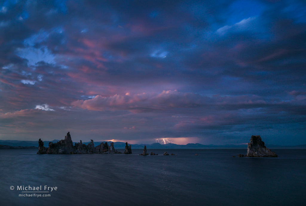 Lightning at dusk, Mono Lake (35mm, 30 seconds at f/5.6, ISO 250)