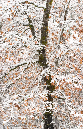 Another cold storm arrived early this morning. Rain turned to snow at my house in Mariposa about an hour ago, and the sky is full of big, fat flakes. I was in Yosemite Valley yesterday afternoon, and found about a foot of wet snow in the meadows. There could be another foot before this latest storm ends. Looks like we’ll have a white Thanksgiving!