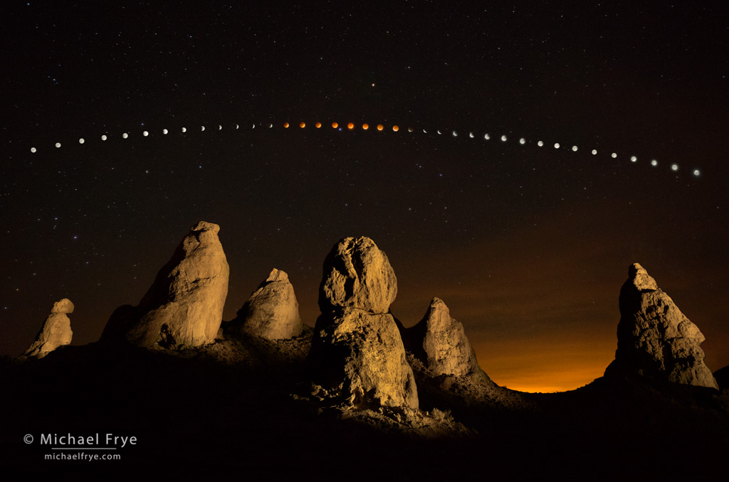 Lunar eclipse sequence, April 14th and 15th, 2014, Trona Pinnacles, CA, USA