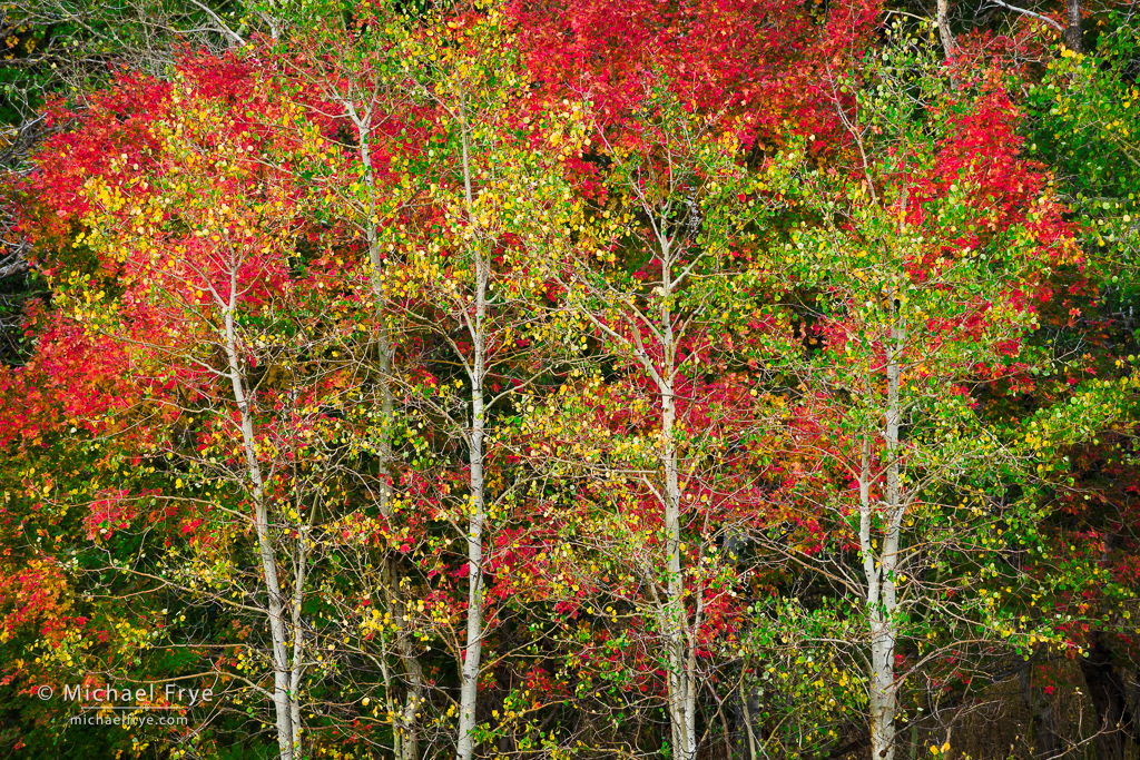 Aspens and bigtooth maples, northern Utah. I used the new Point Color tool to tweak the originally dull-looking greens and yellows in this photo and make them more vibrant.