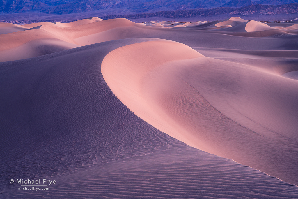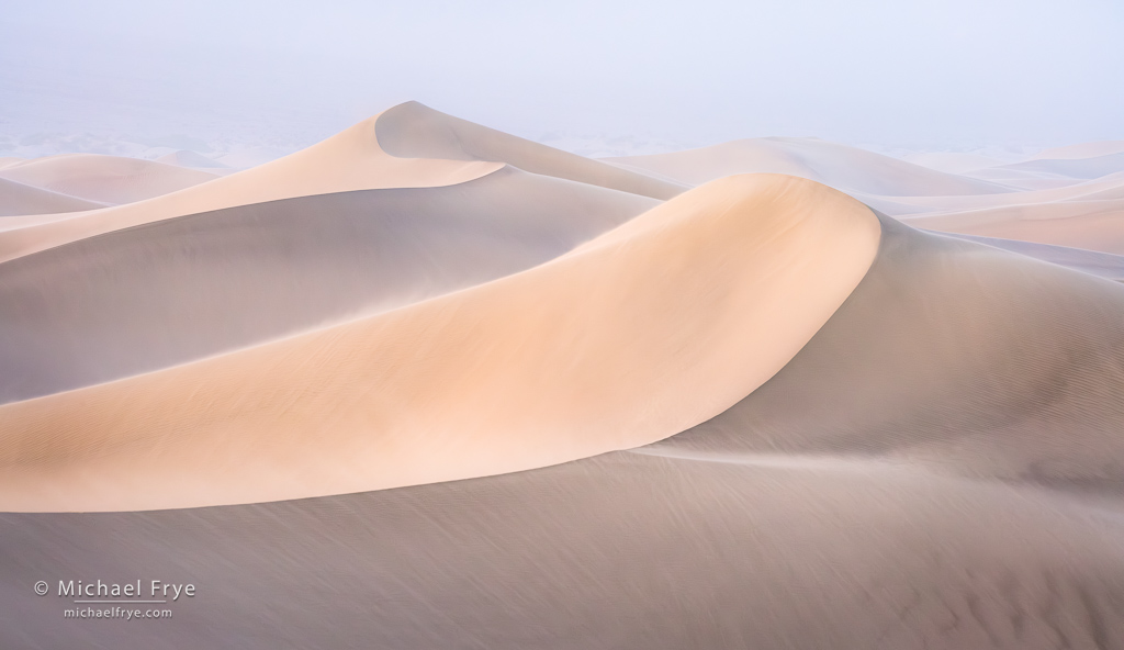 Dunes at sunrise in a sandstorm, Death Valley NP, California. During a dust storm, as you might expect, my sensor accumulated plenty of dust spots (see the next image below).