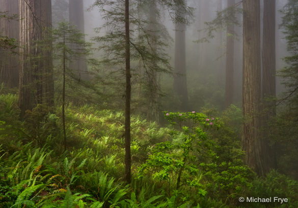 Eleven years ago we’d camped in this area, and hiked a beautiful trail through the redwoods (nine-year-old Kevin complaining the whole way, especially on the steep climb back). The next morning I returned alone with my camera, found the forest enveloped in dense fog, and made one of my favorite photos ever.