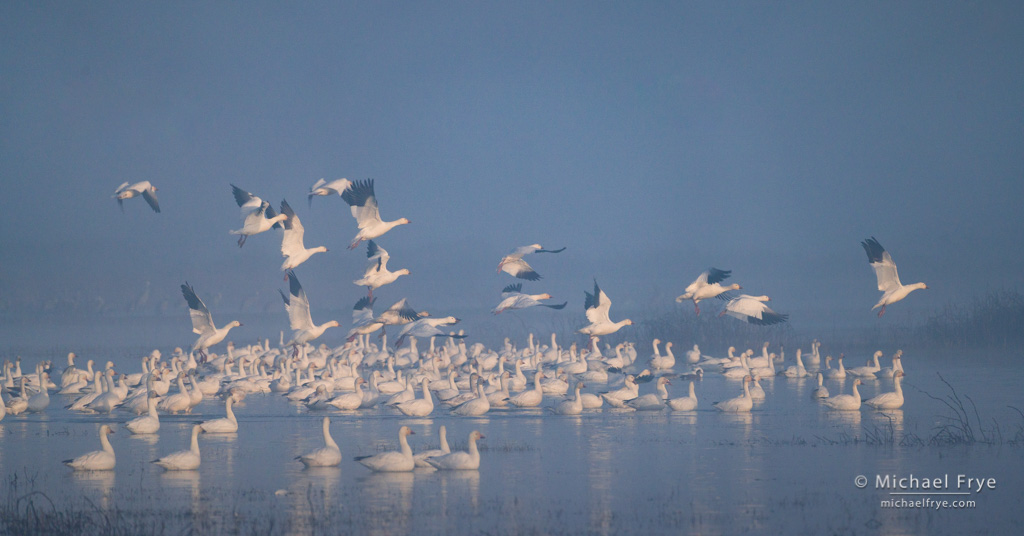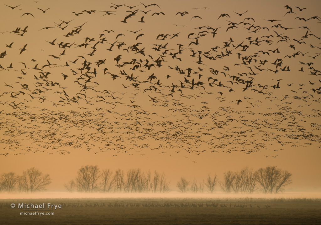 But I keep trying to capture some of this beauty, to convey a little bit of the awe and wonder I feel in these Central-Valley marshes while watching the sun break through the fog as wave after wave of cranes take flight, or hearing the deafening roar of 20,000 geese flying overhead in the waning light of dusk. Conveying even a hint of those feelings in a still photograph is a daunting task, but one I feel compelled to pursue because of the connection I feel with these places and those moments.