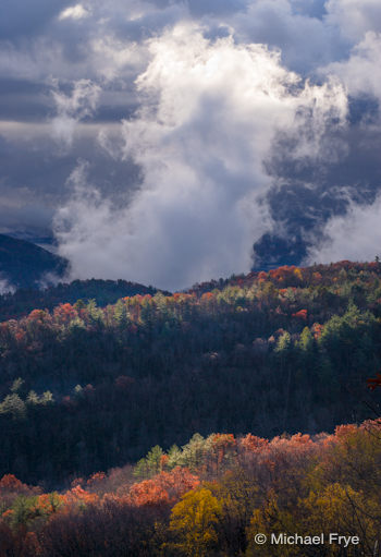 The accompanying image was made during my trip to South Carolina last November. It was a fast-changing situation—the sun suddenly broke through, and I missed the exposure slightly, so the brightest highlights at the top of the clouds were blown out. By the time I adjusted the exposure the scene had changed.