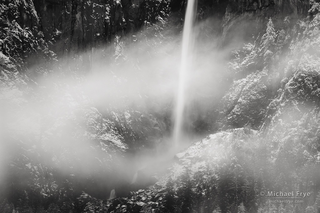 Mist, snow, and Bridalveil Fall, Yosemite NP, California