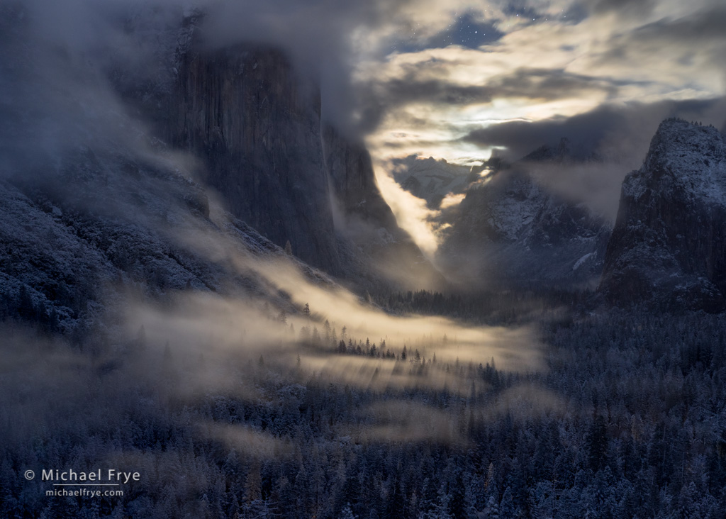 Clearing storm by moonlight from Tunnel View, Yosemite NP, CA, USA
