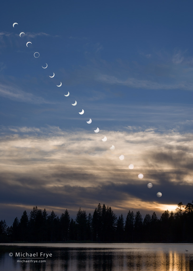 Sequence showing the annular solar eclipse, May 20th, 2012, from Manzanita Lake, Lassen Volcanic NP