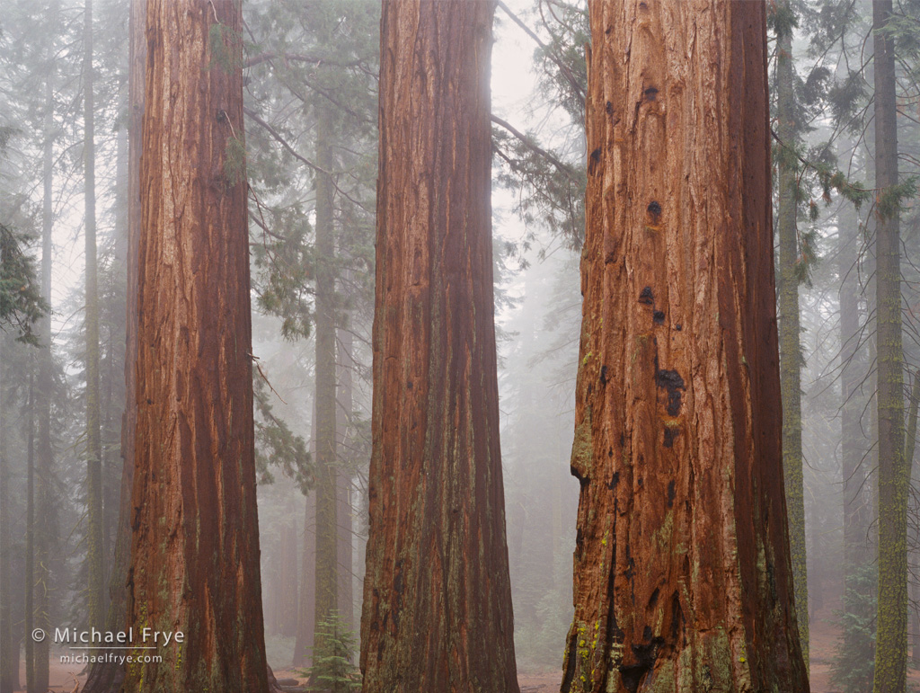 Giant sequoias in fog, Mariposa Grove, Yosemite NP, CA, USA